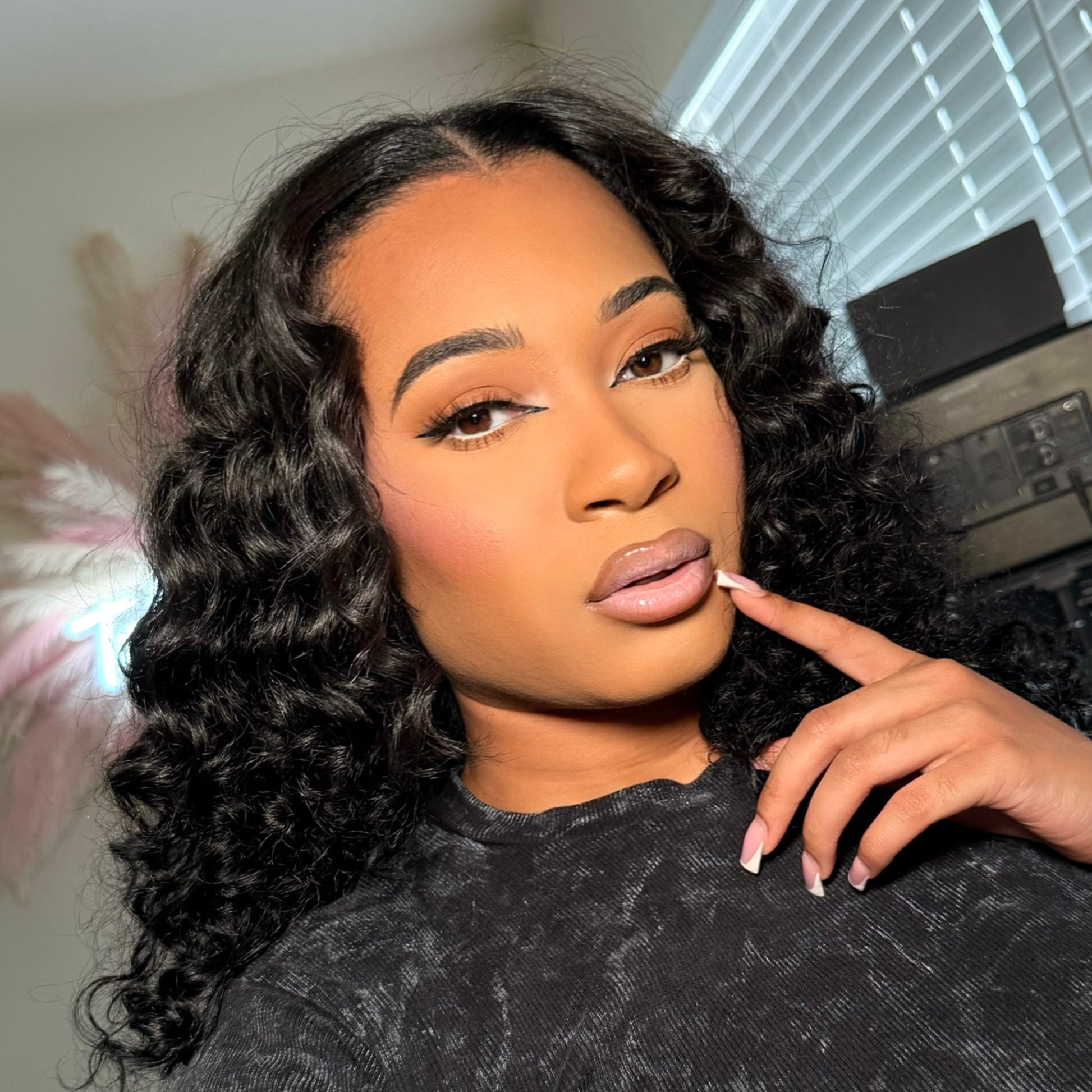 Second Picture: CEO Tali wearing Cinnamon lip liner and Pink Birthday gloss.